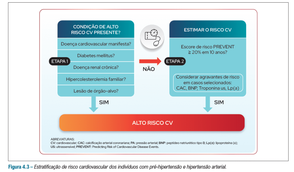 2. Estratificação de risco: A avaliação do risco cardiovascular global (por exemplo, usando o escore PREVENT – que veremos mais à frente) permite identificar pacientes que, mesmo com essa faixa de pressão arterial, podem se beneficiar de intervenções mais intensivas, especialmente se houver comorbidades como diabetes, doença renal crônica ou risco cardiovascular estimado ≥7,5% em 10 anos.