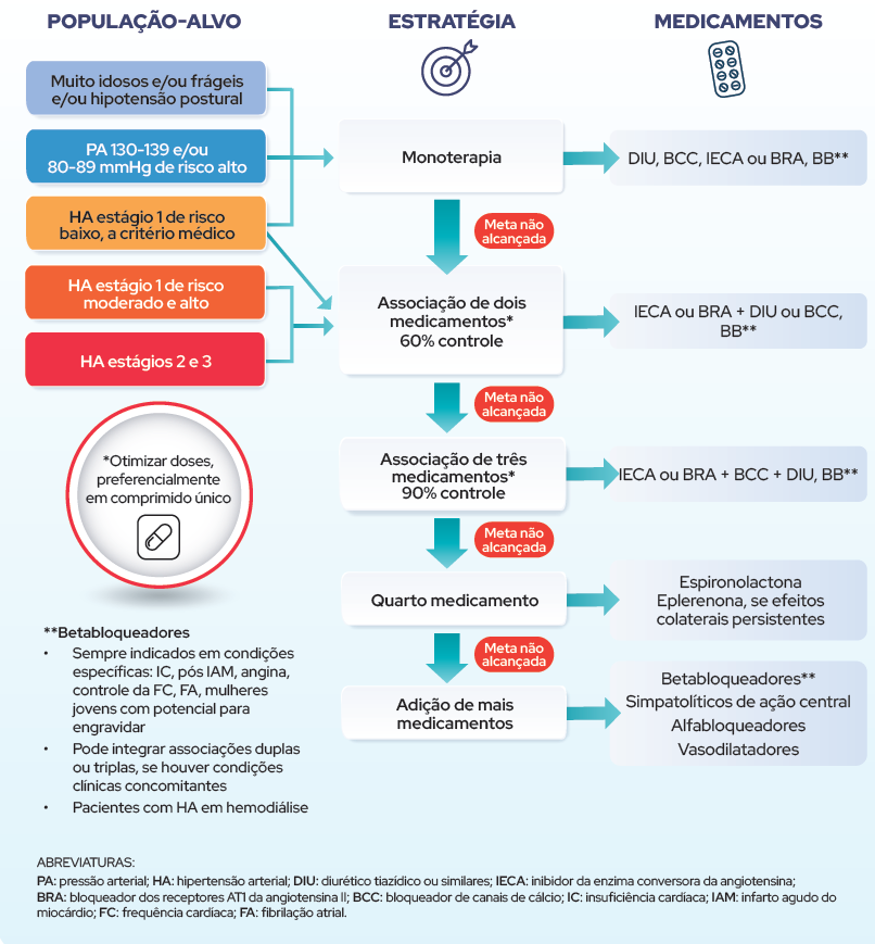 *Exceto para idosos frágeis, muito idosos ou com condições que comprometam a expectativa de vida, a meta de PA no valor máximo tolerado