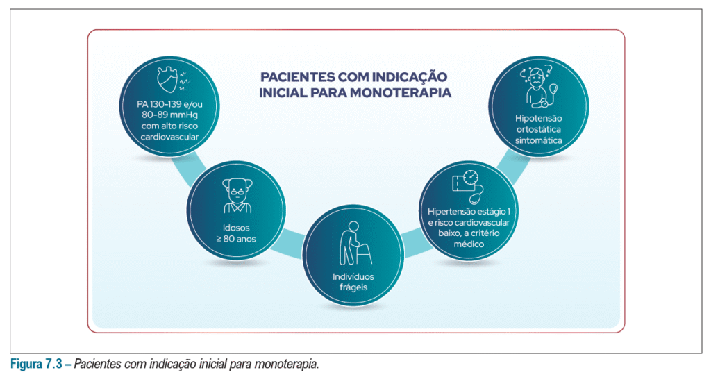 – Terapia medicamentosa iniciada diretamente em pacientes com hipertensão estágio I e demais estágios (em combinação com MEV)