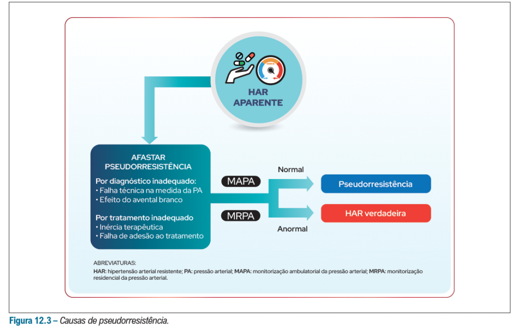 Antes de fecharmos o diagnóstico de HAS resistente, deve-se excluir pseudoreesistência – Que são situações que expliquem o motivo da pressão não ficar controlada com os 3 fármacos em dose máxima