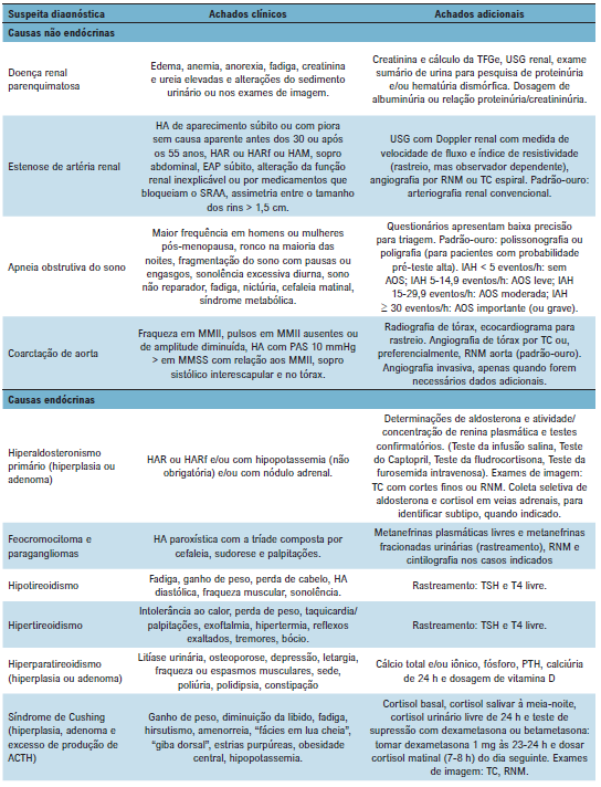 Abaixo estão as condutas diagnósticas frente a classificação específica da hipertensão: